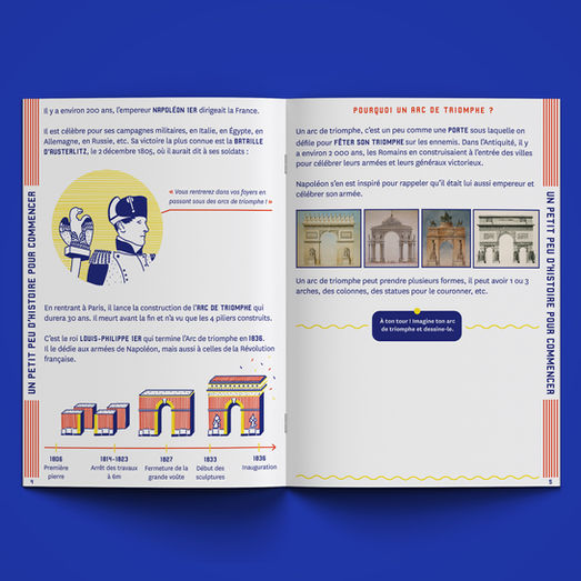 L'Arc de triomphe de Paris et Laurette Architecte te proposent une visite ludique et insolite du monument à travers ce livret-jeux. Tout au long du parcours, tu apprendras l'histoire le l'Arc de triomphe de Paris et à quoi sert un arc de triomphe. Tu découvriras aussi des secrets de l'architecture du monument et décryptera les décors. Tu rencontreras Napoléon et le Soldat inconnu. Enfin, tu visiteras les salles et la terrasse avec de nombreuses autres choses à observer.